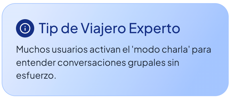 Usa varios motores de IA para entender el contexto, minimizando errores. Es como tener un intérprete profesional, pero discreto y en tu oído.