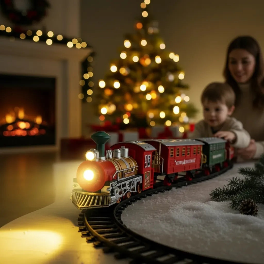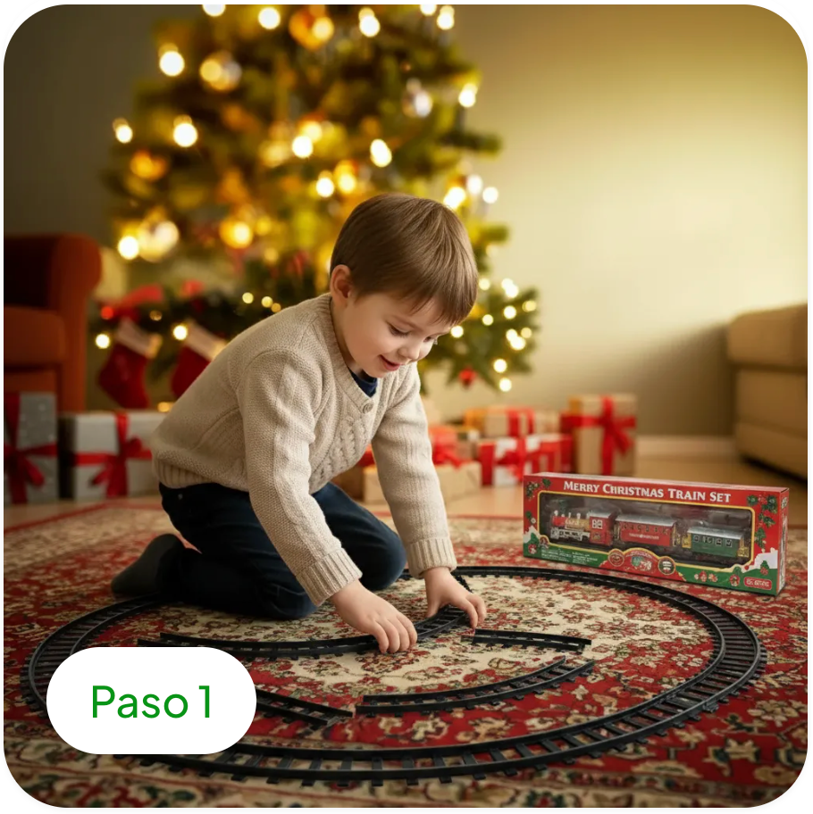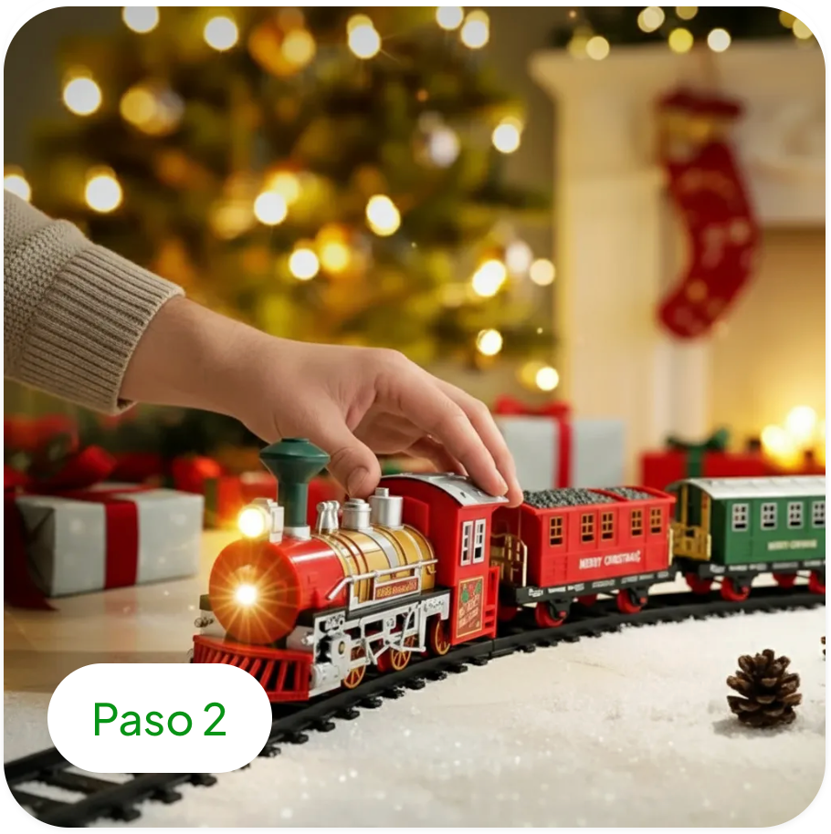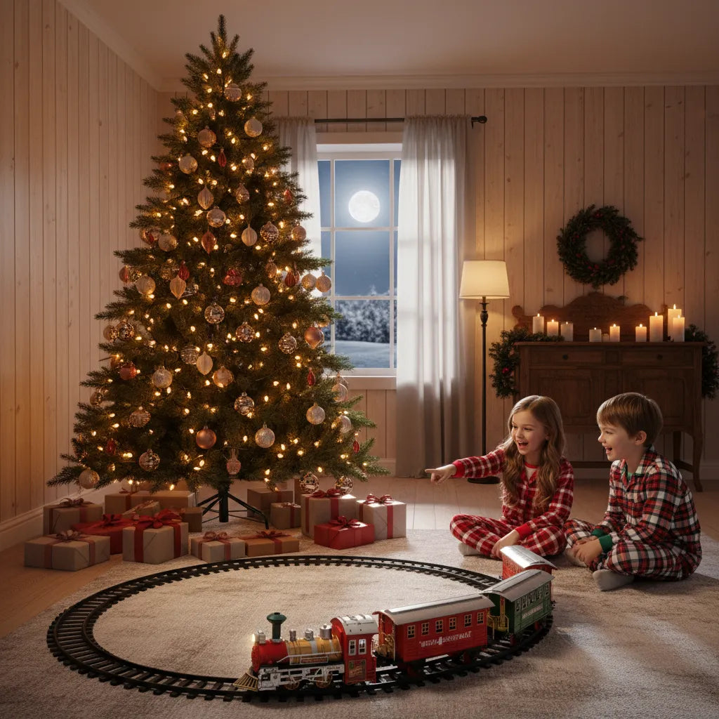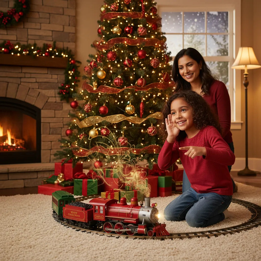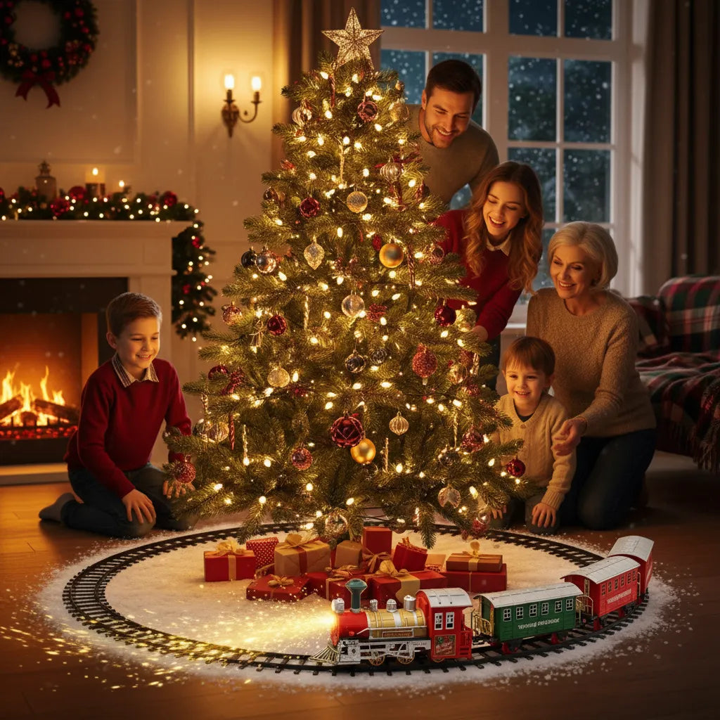 El movimiento y la luz del tren capturan la atención cerebral, transformando tu árbol estático en el corazón vivo de sus recuerdos navideños imborrables.