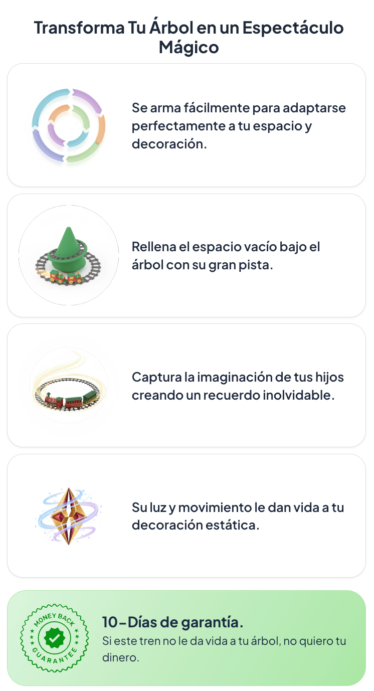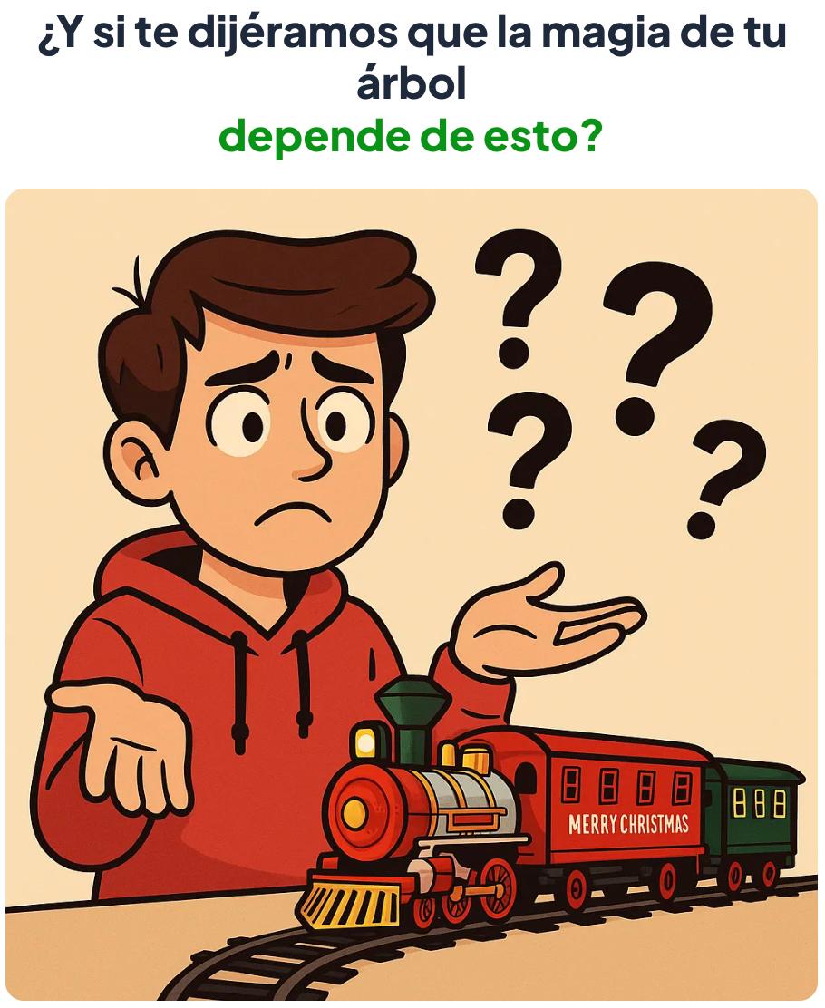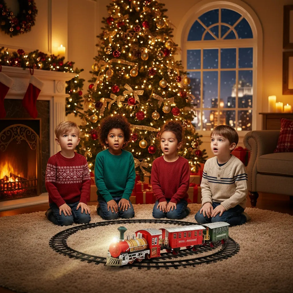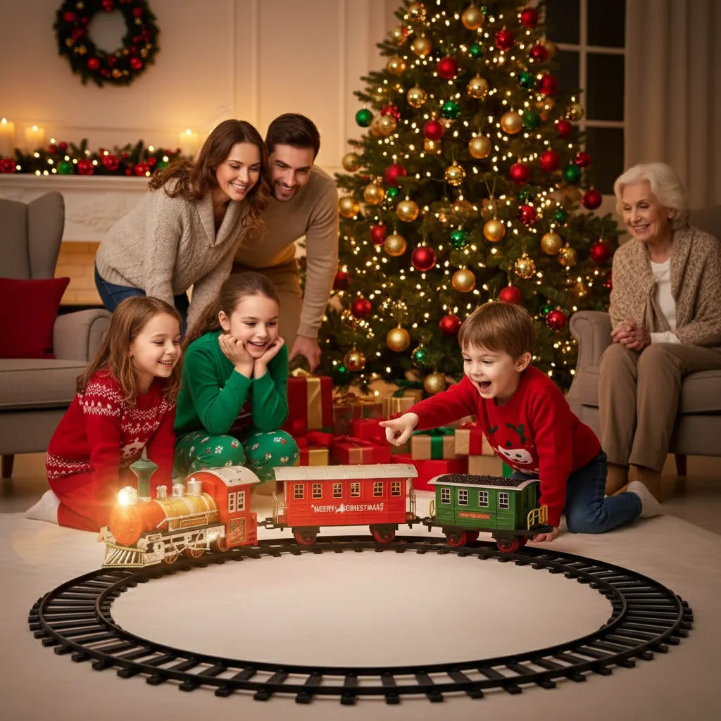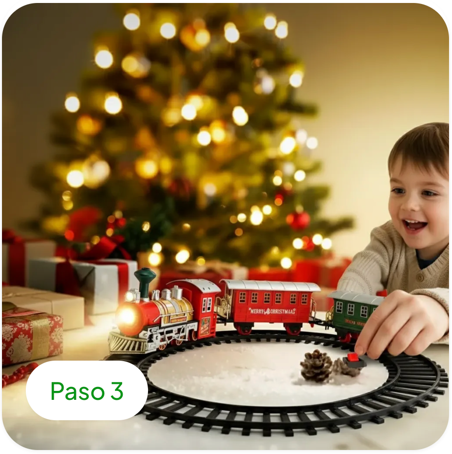 El movimiento y la luz del tren capturan la atención cerebral, transformando tu árbol estático en el corazón vivo de sus recuerdos navideños imborrables.